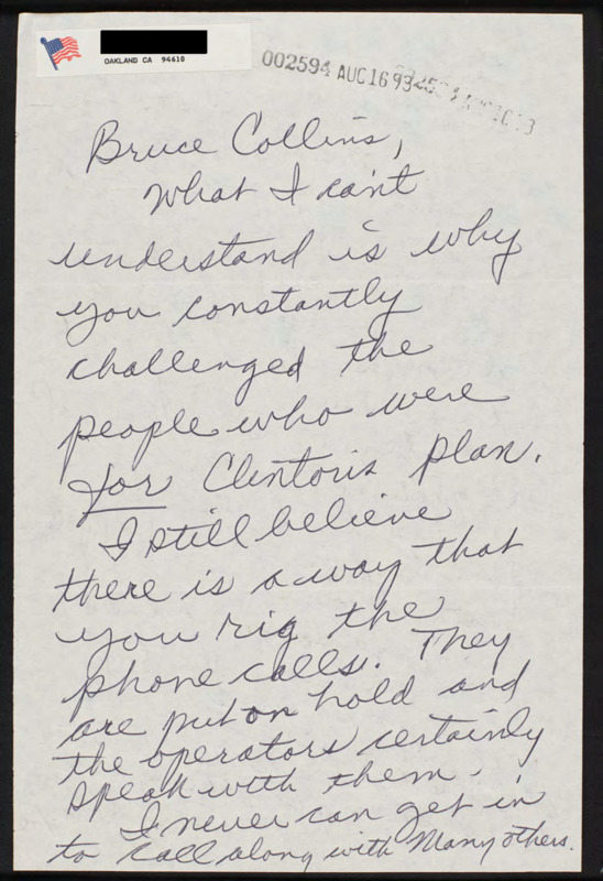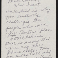 Expresses discontent with staff member's anti-Clinton, conservative bias.