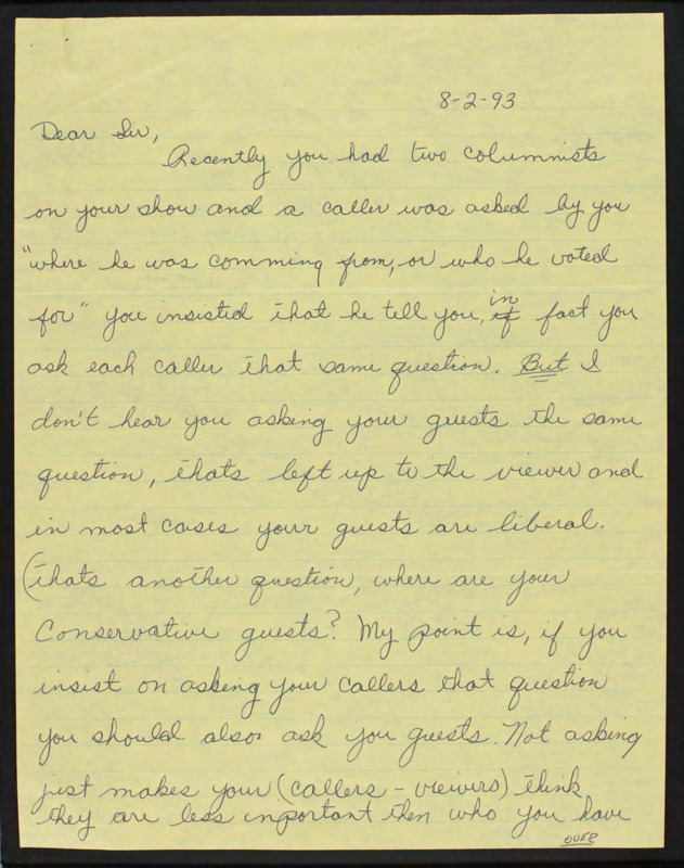 Letter to C-SPAN, 1993-08-02; 12570