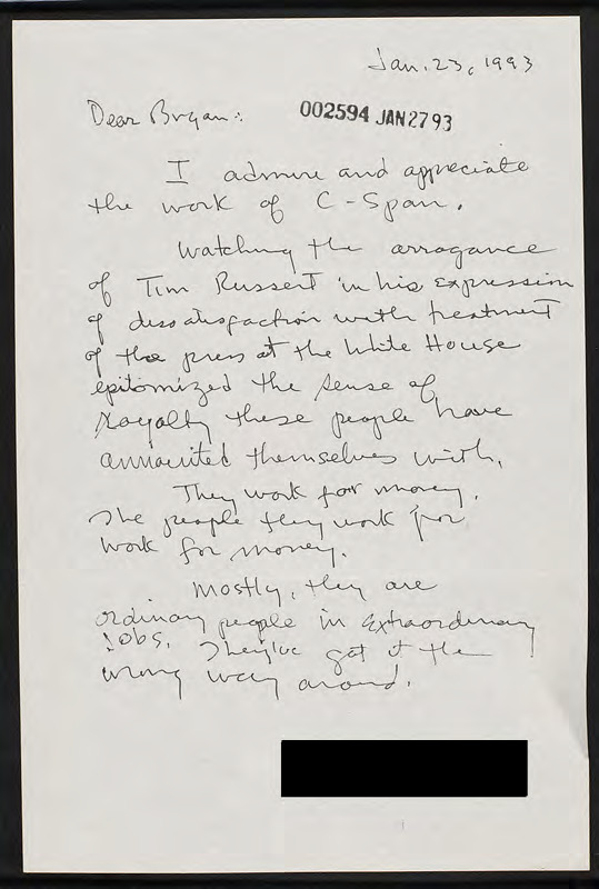Letter to C-SPAN, 1993-01-23