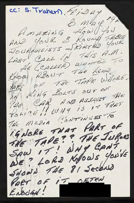 States that C-SPAN and other media outlets are ignoring the initial part of a tape that allegedly shows Rodney King attacking the police.