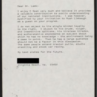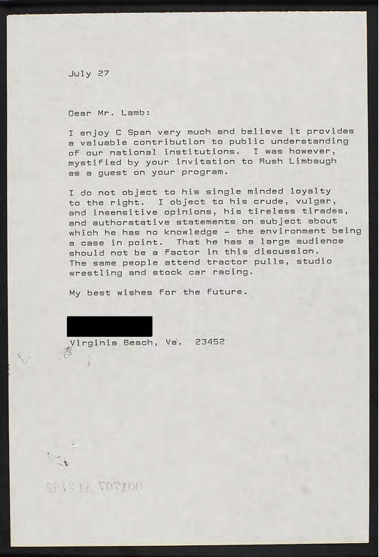 Letter to C-SPAN, 1992-07-27; 23452