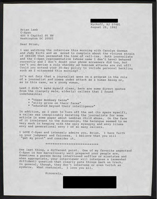 Addresses the sexism endured by a female journalists during a call-in segment.