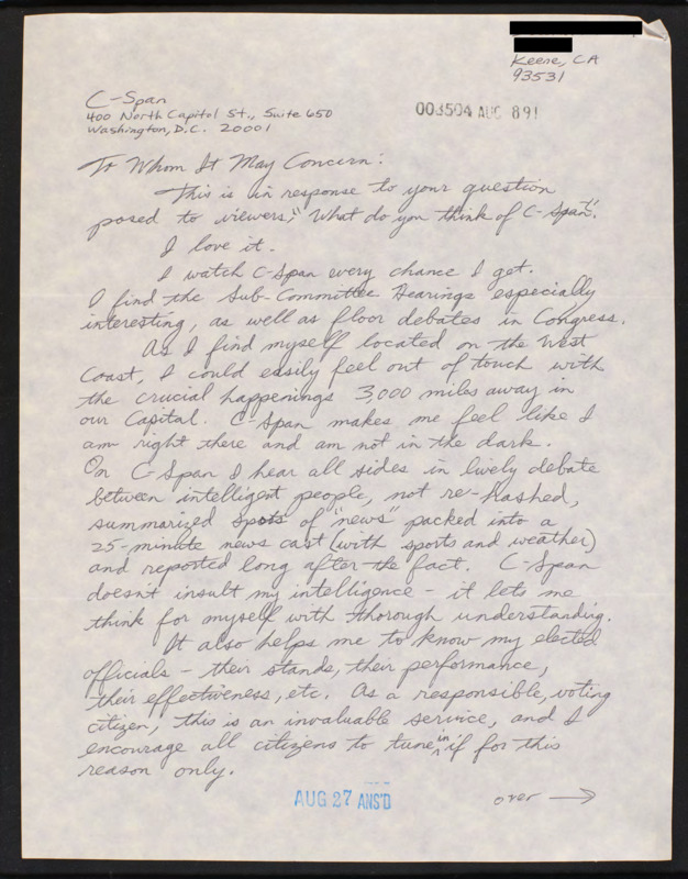 Letter to C-SPAN, n.d.; 93531