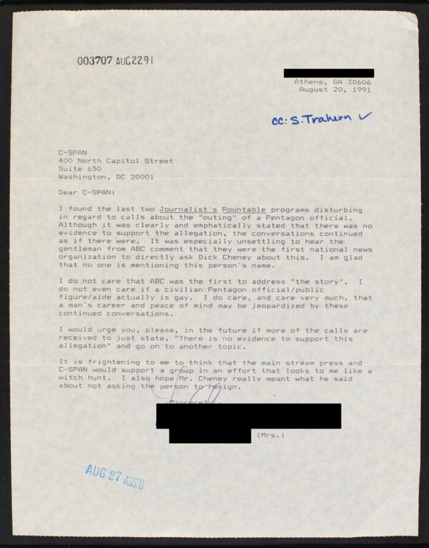 Expresses discontent with C-SPAN's reporting of an allegation against a Pentagon official.