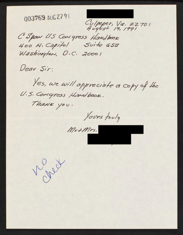 Letter to C-SPAN, 1991-08-19; 22701