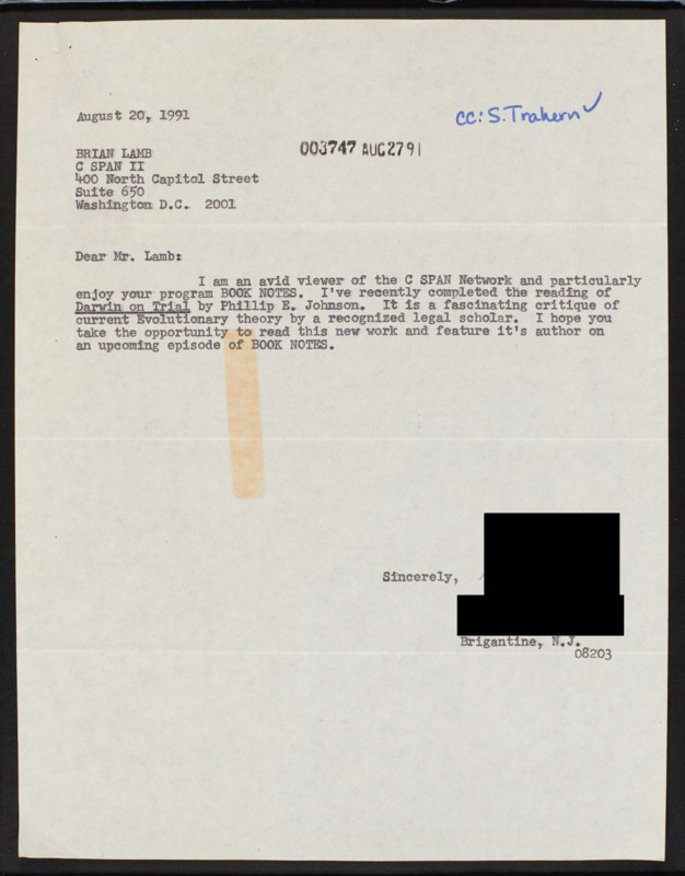Letter to C-SPAN, 1991-08-20; 08203