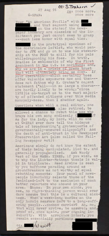 Letter to C-SPAN, 1991-08-27; 74169