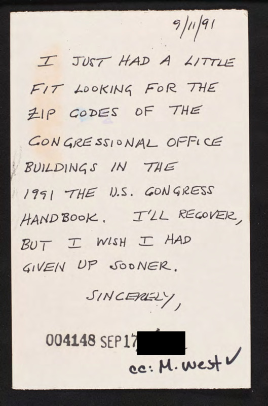 Letter to C-SPAN, 1991-09-11; 72512