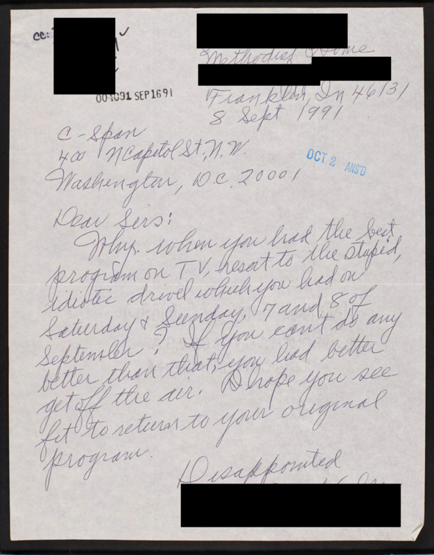 Letter to C-SPAN, 1991-09-08; 46131