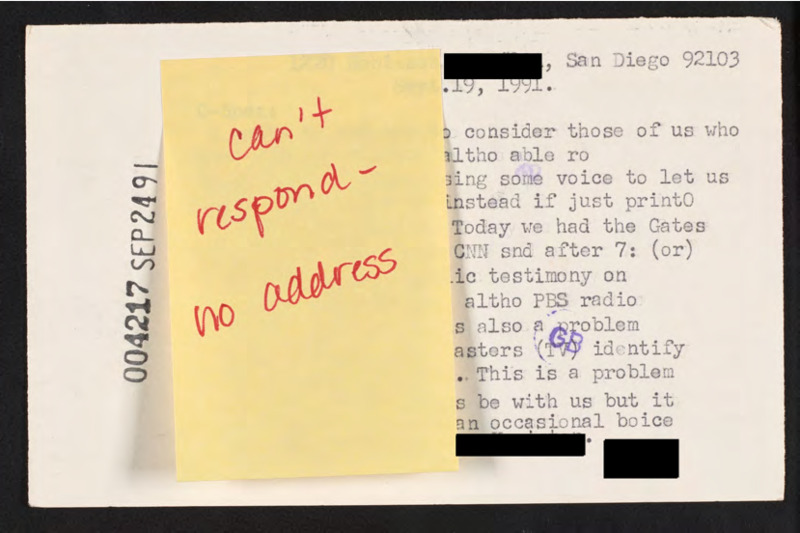 Letter to C-SPAN, 1991-09-19; 92103