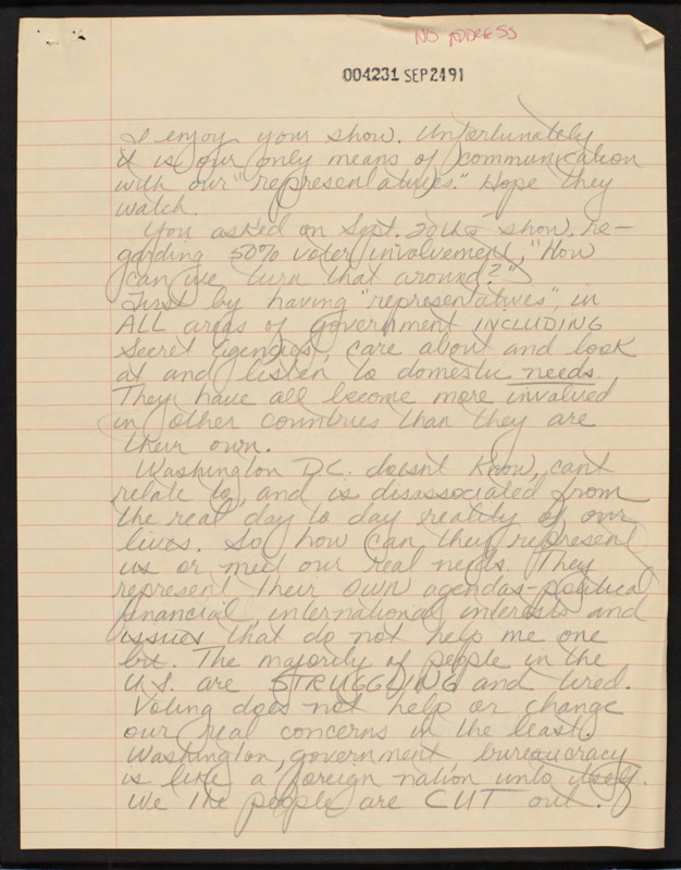 Letter to C-SPAN, 1991-09-21