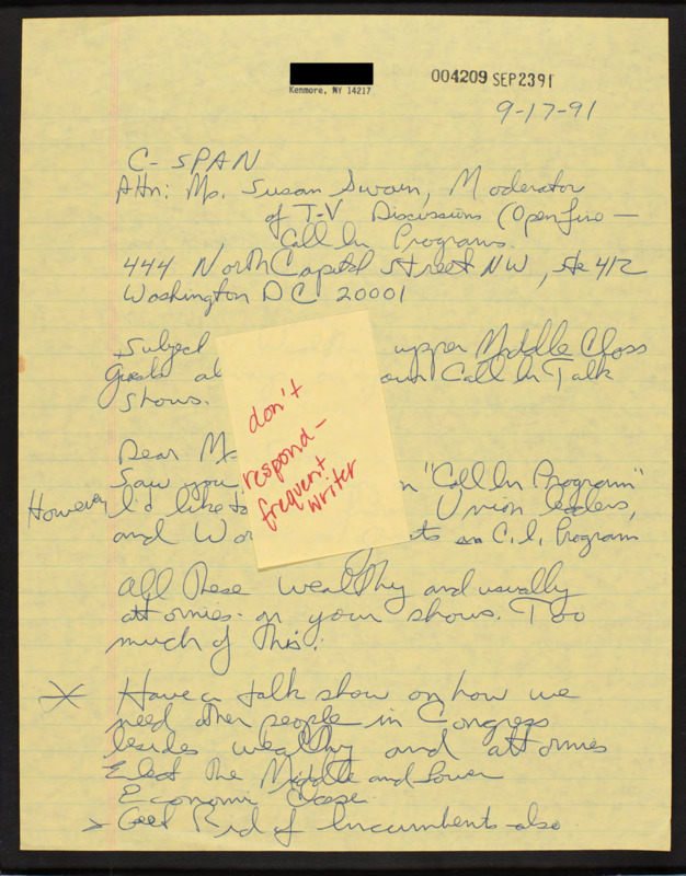 Letter to C-SPAN, 1991-09-17; 14217