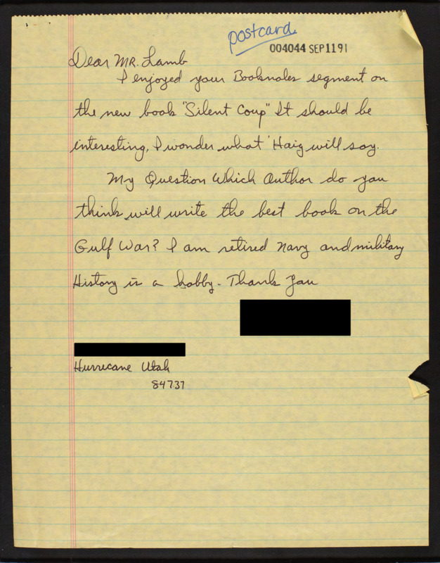 Letter to C-SPAN, 1991-08-13; 84737