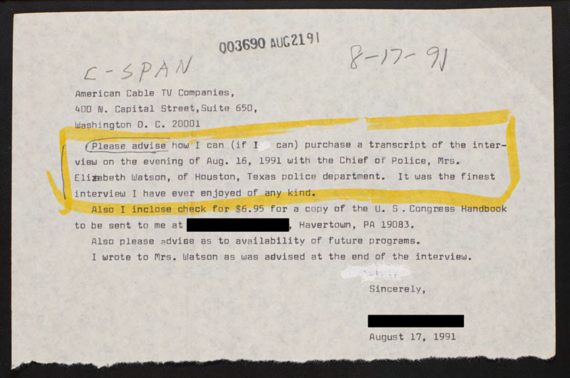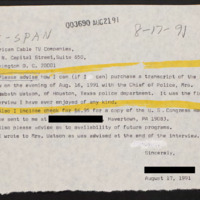 Letter to C-SPAN, 1991-08-17