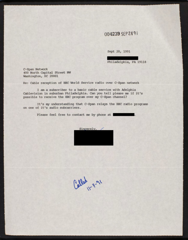 Letter to C-SPAN, 1991-09-20; 19118