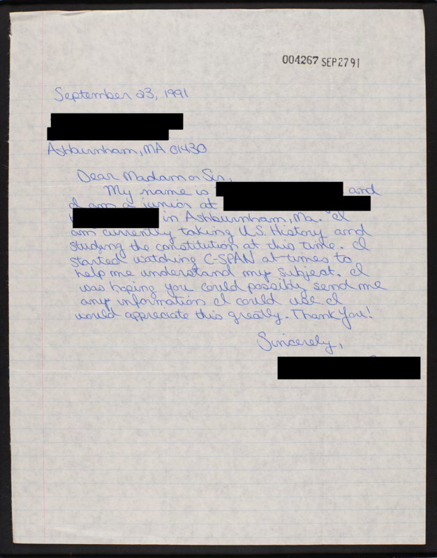 Letter to C-SPAN, 1991-09-23; 01430
