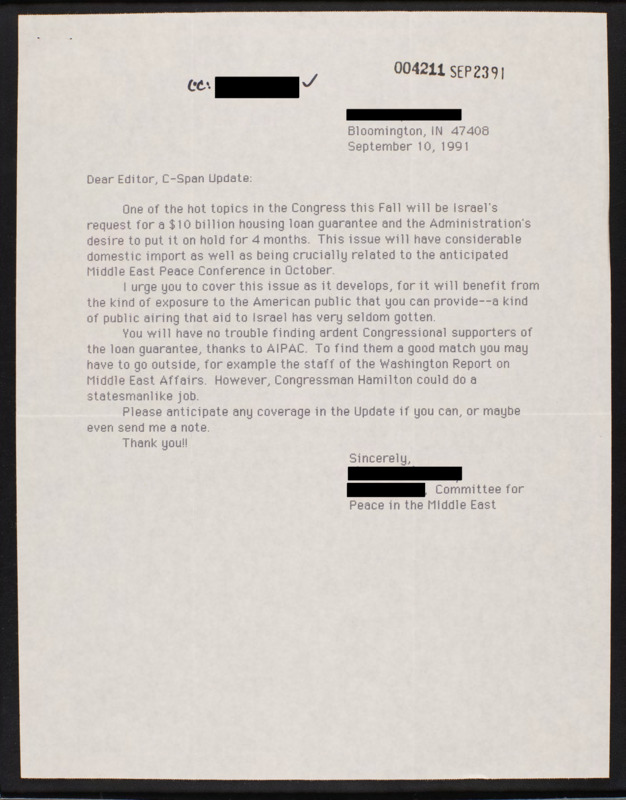 Suggests that C-SPAN cover Congressional discussions on economic assistance to Israel.