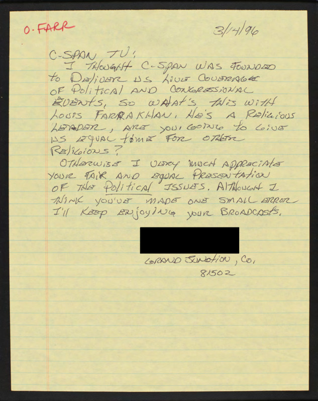 Letter to C-SPAN, 1996-03-14; 81502