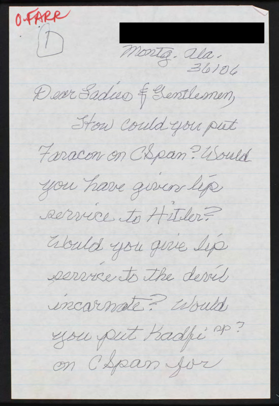 Letter to C-SPAN, n.d.; 36106