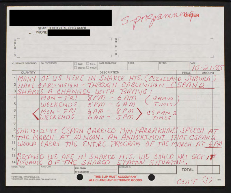 Letter to C-SPAN, 1995-10-21; 44128