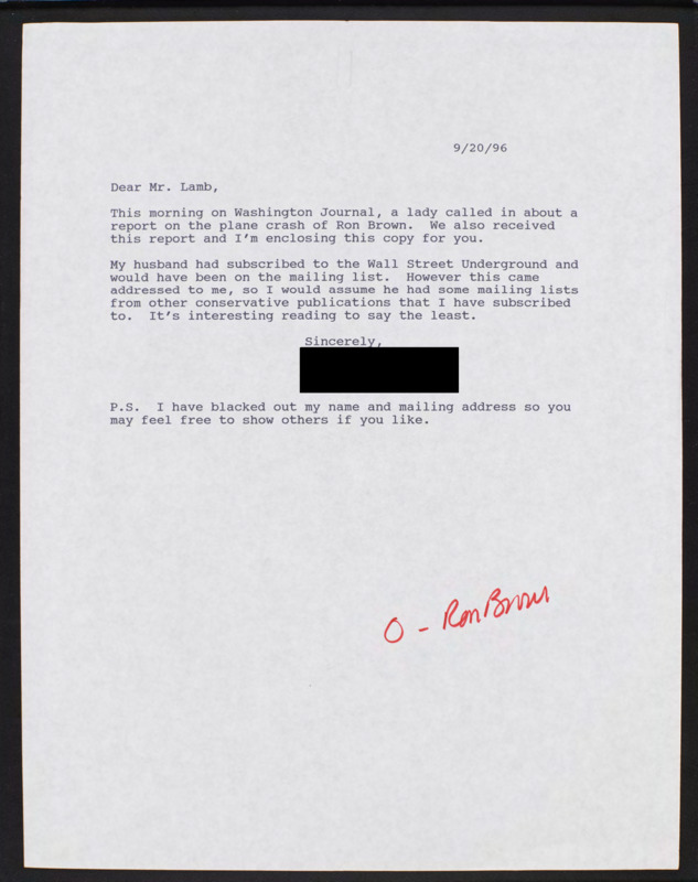 Letter to C-SPAN, 1996-09-20