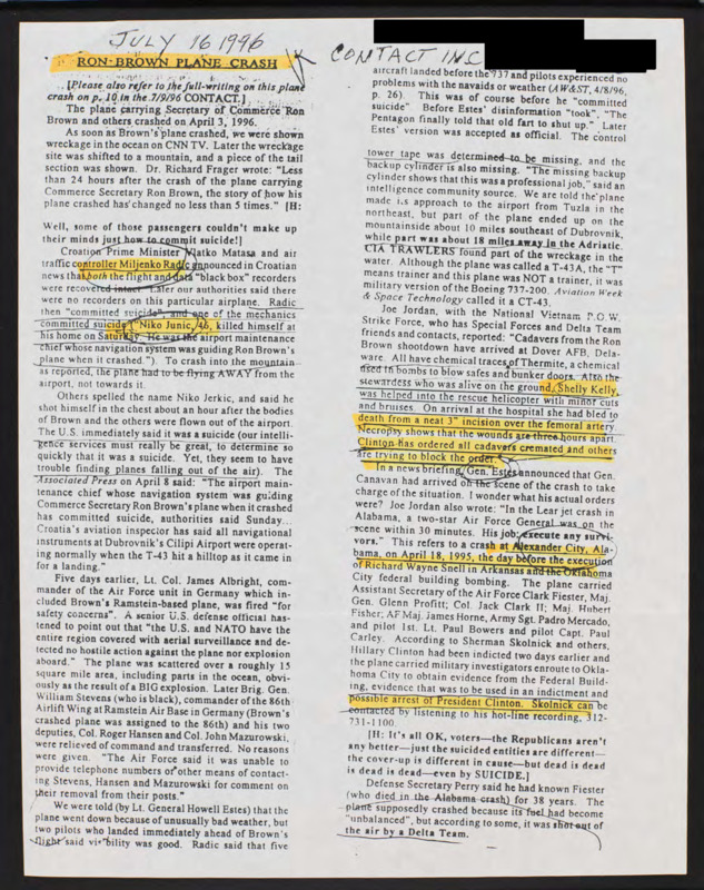 Discusses alleged inconsistencies in the presentation of facts surrounding Ron Brown's plane crash.