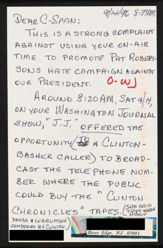 Letter to C-SPAN, 1996-09-14; 07661