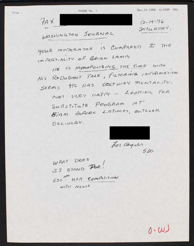 Letter to C-SPAN, 1996-12-14