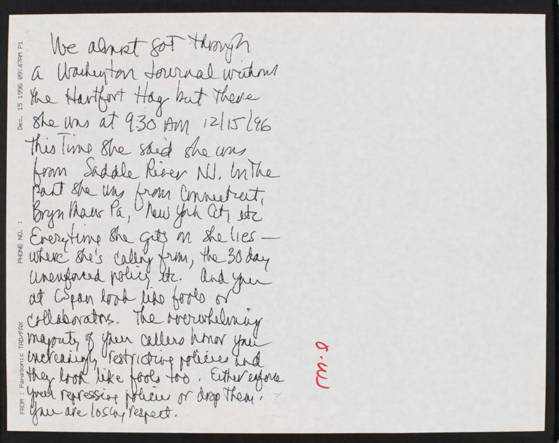 Letter to C-SPAN, 1996-12-15