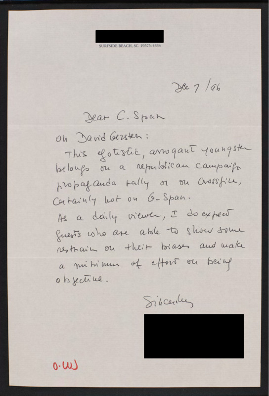 Letter to C-SPAN, 1996-12-07; 29575