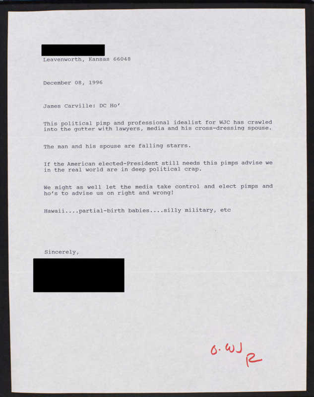 Criticizes James Carville and the media.