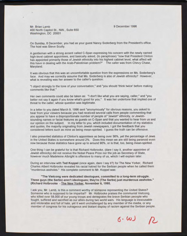 Discusses the presence of Judaism in the media, believing them to be overrepresented and discusses anti-Serbian policies and Bosnian Muslims.