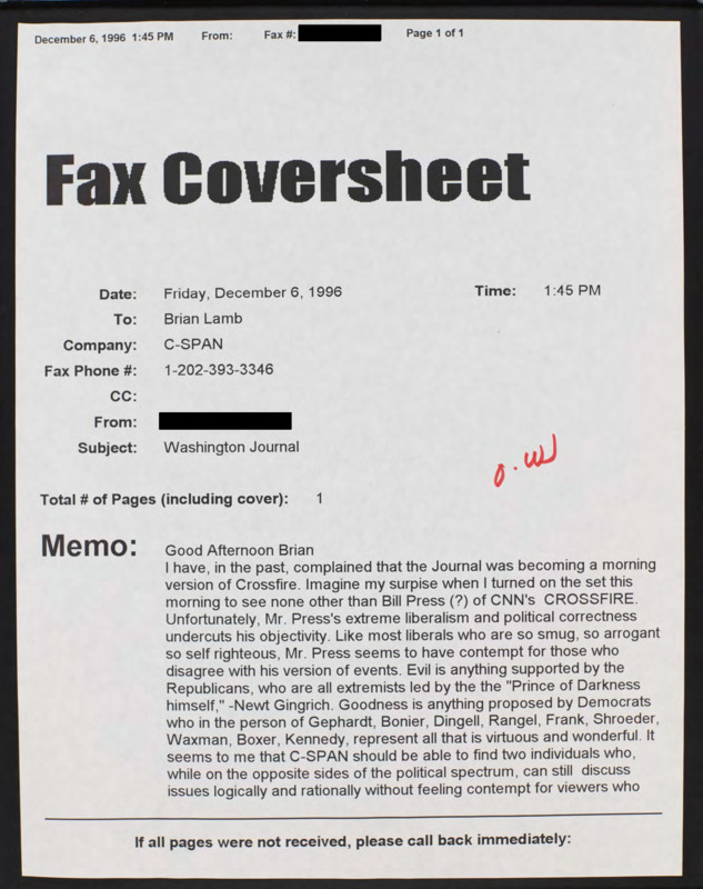 Letter to C-SPAN, 1996-12-06