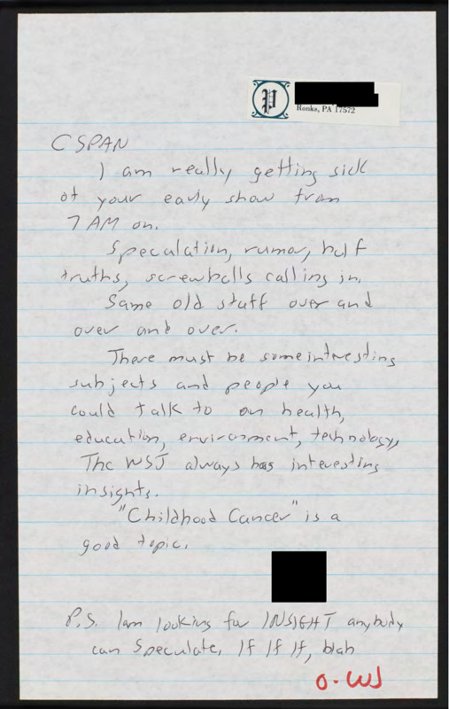 Letter to C-SPAN, n.d.; 17572