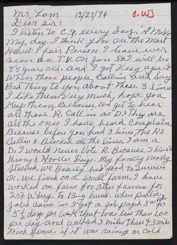 Letter to C-SPAN, 1996-12-27; 16161