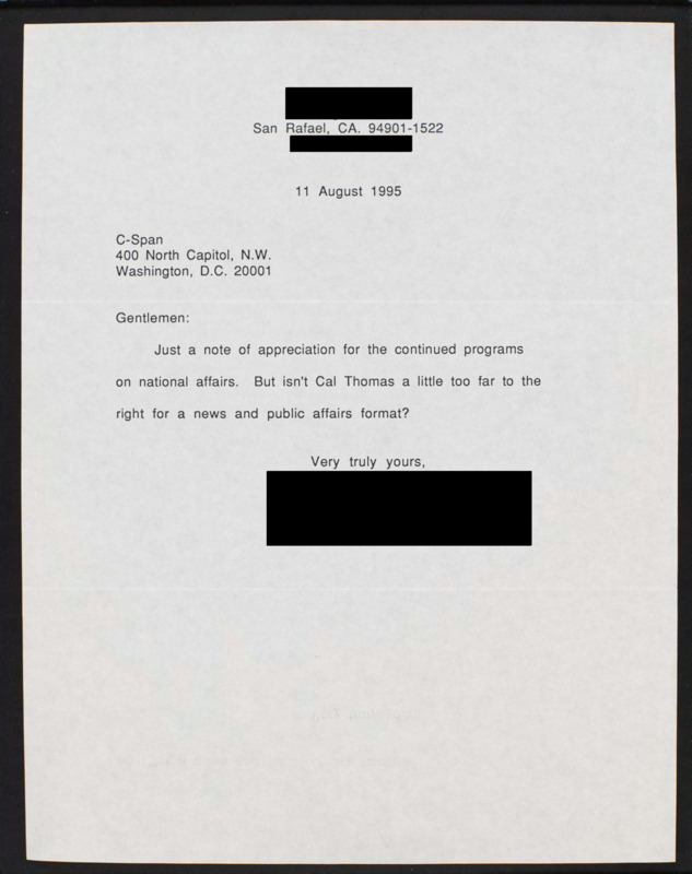 Expresses appreciation for C-SPAN, but dislike of a particular guest.