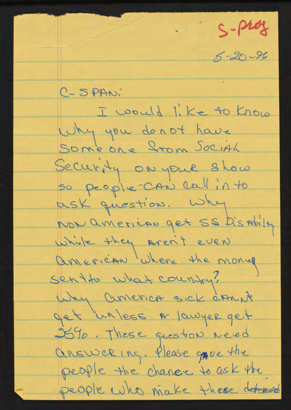 Letter to C-SPAN, 1996-05-17; 33065