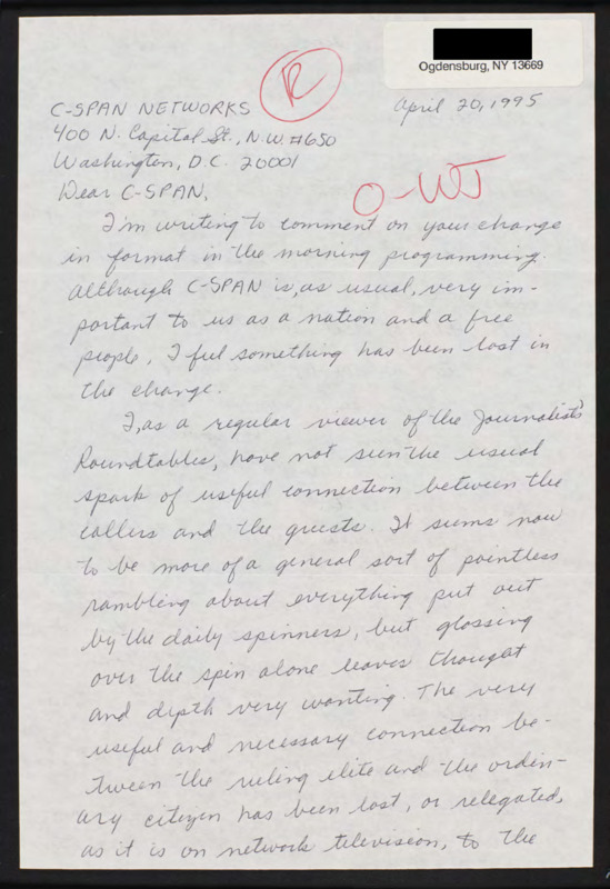 Feels that Washington Journal's new format has lessened the debate and interest of the program.