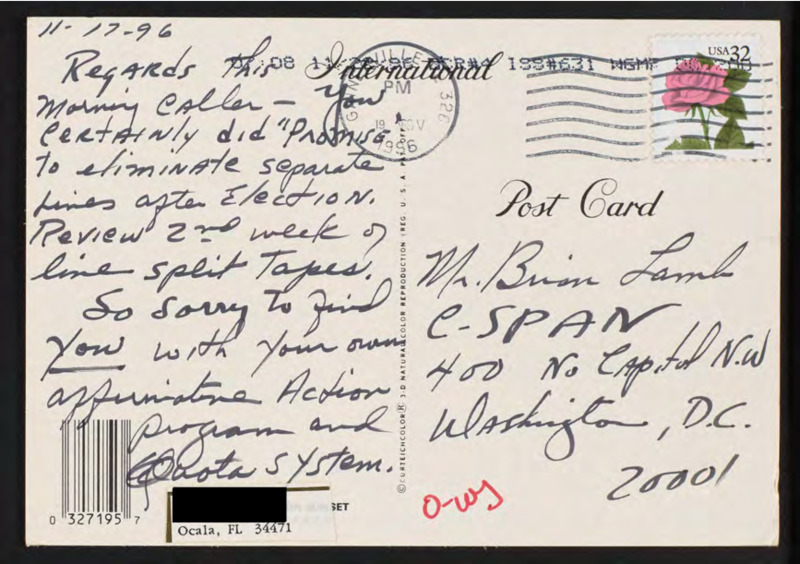 Letter to C-SPAN, 1996-11-15