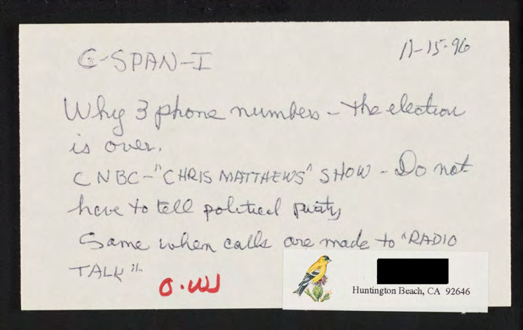 Letter to C-SPAN, n.d.; 33912