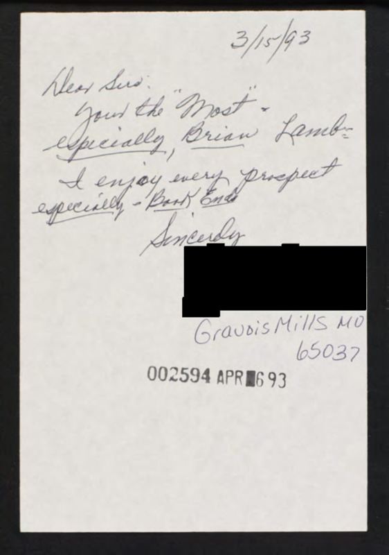 Letter to C-SPAN, 1993-03-15; 65037