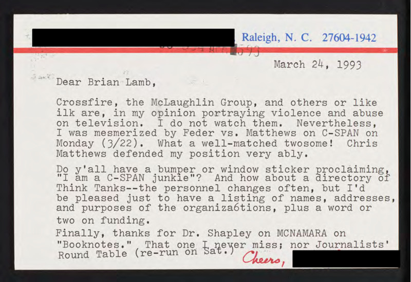 Letter to C-SPAN, 1993-03-24; 27604