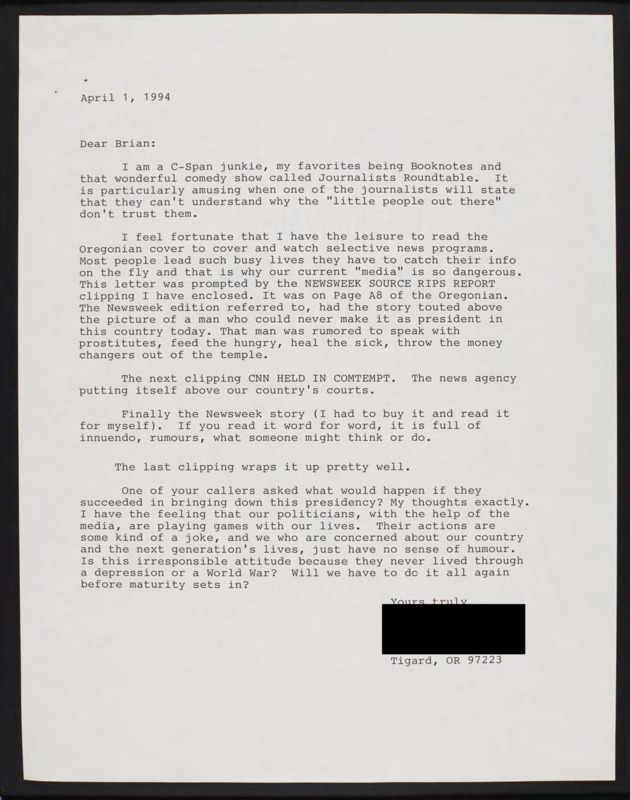 Letter to C-SPAN, 1994-04-01; 97223