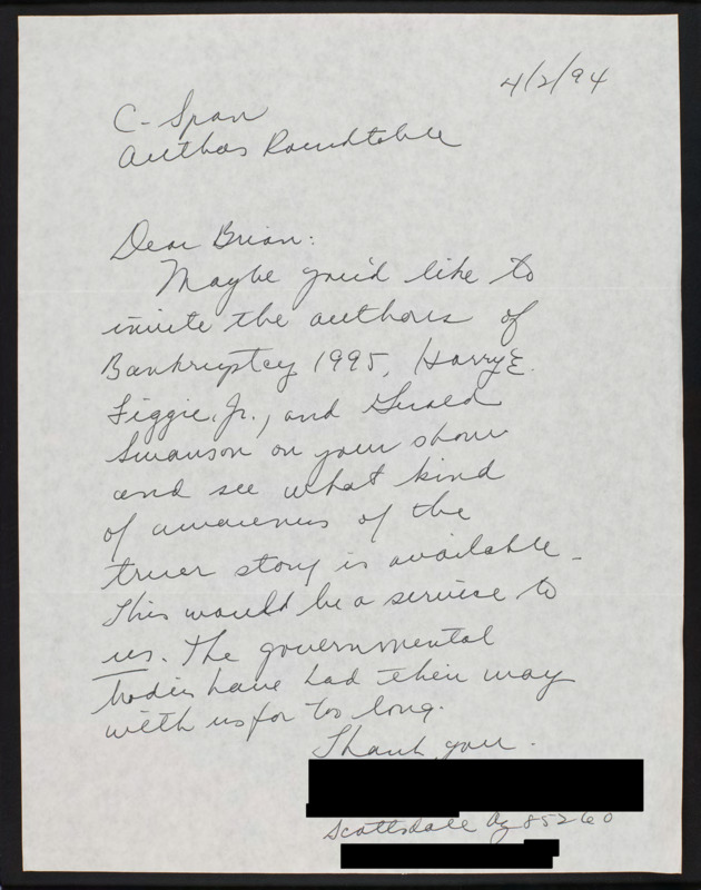 Letter to C-SPAN, 1994-04-02; 85260