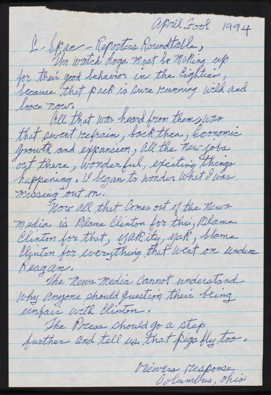 Expresses discontent with media's coverage of Clinton in regards to economic troubles.