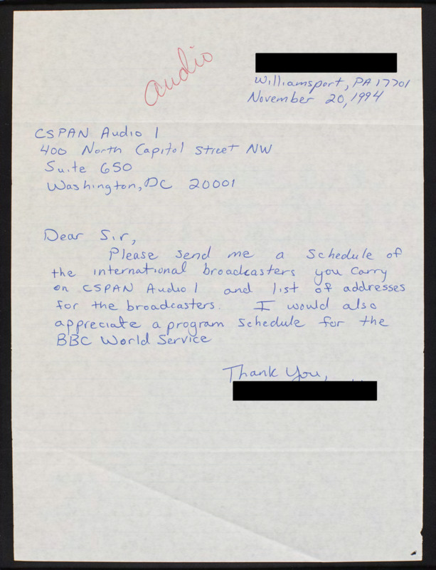 Asks for information about scheduling of international radio broadcasters like the BBC.