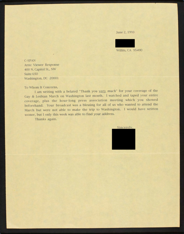 Expresses appreciation for coverage of the March on Washington for Lesbian, Gay, and Bi Equal Rights..