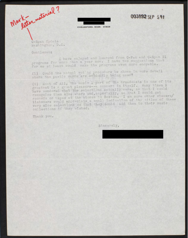 Suggests improving the voting procedure as shown on C-SPAN and offering captions for the music selected.