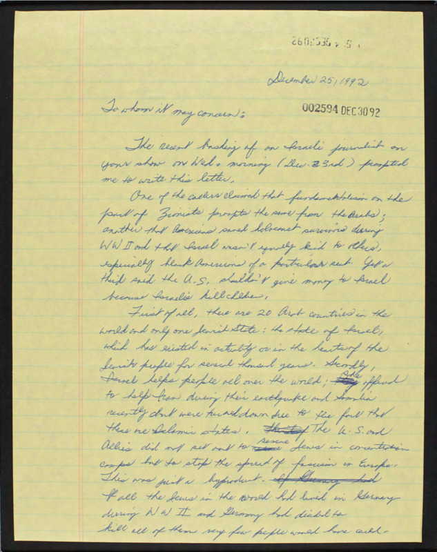 Letter to C-SPAN, 1992-12-25