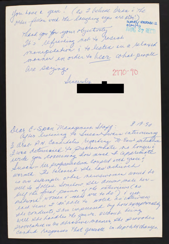Letter to C-SPAN, 1990-08-20; 96080